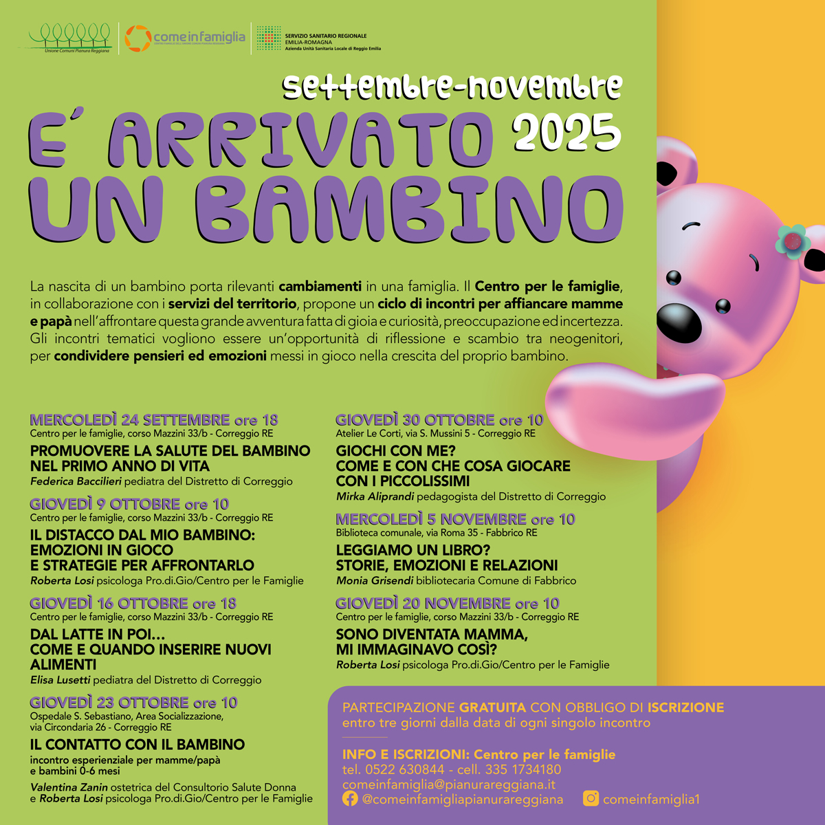 Gli incontri si svolgeranno presso la sede del Centro per le Famiglie, Correggio, Corso Mazzini 33/b.